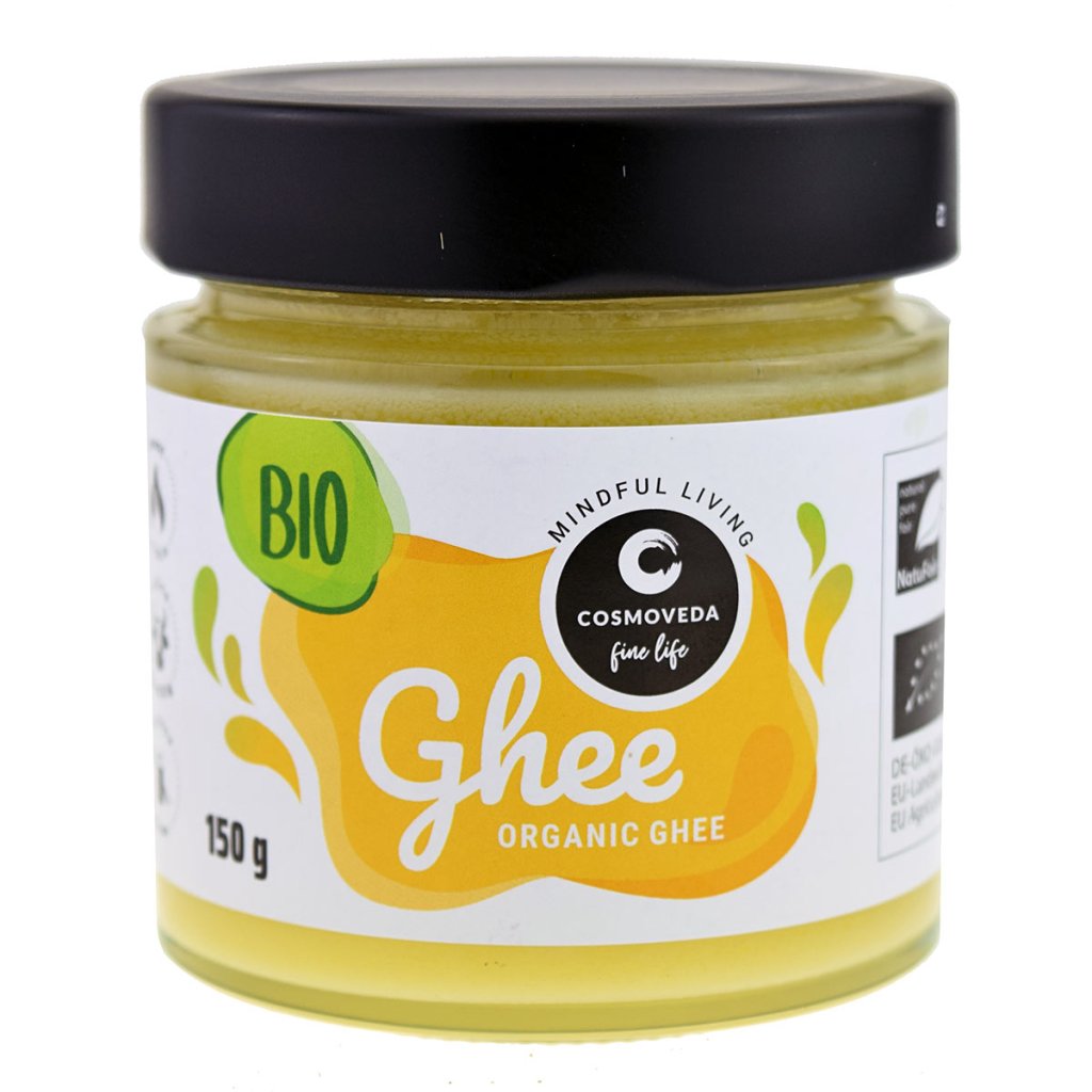 Cosmoveda Pure Ghee, čisté ghí (propuštěné máslo), je důležitou ingrediencí v ajurvédské kuchyni. Používá se k vaření, pečení a dušení jako přírodní a všestranný produkt.