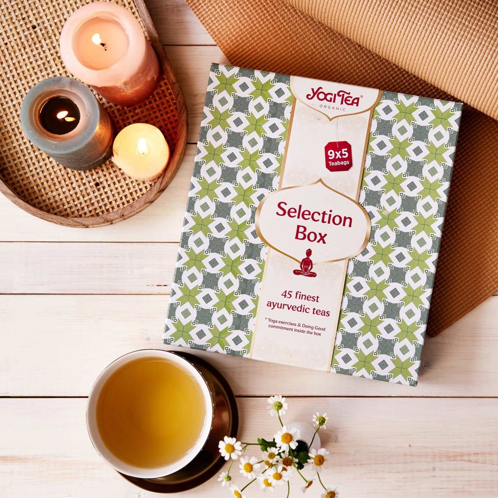 - 9 druhů Yogi Tea, 5 sáčků z každého