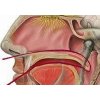 - Šňůrku/katétr opatrně vsouváme do nosní dírky voskovanou částí k zadní části nosní sliznice a protáhneme ven ústy.