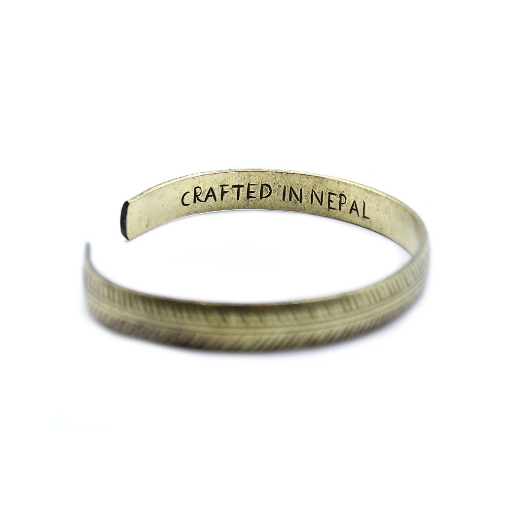 Kovový úzký náramek je ručně vyroben v Nepálu a lze jej ohnout a přizpůsobit jakémukoli zápěstí. Baleno v dárkové krabičce.