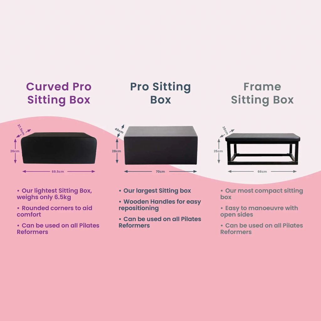 - Align-Pilates Sitting Box nejenže umožňuje nová cvičení na vašem Reformeru Pilates, ale dělá cvičení vsedě a na břiše pohodlnější. Vhodné pro použití na všech značkách Pilates reformer. Nabízí povrchovou úpravu nejvyšší kvality a nejvýhodnější sedací soupravu dostupnou v Evropě.